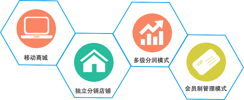 集“移動(dòng)商城+獨(dú)立分銷店鋪+多級(jí)分潤(rùn)模式/會(huì)員制管理模式